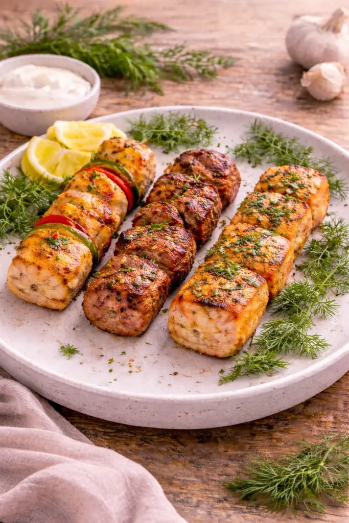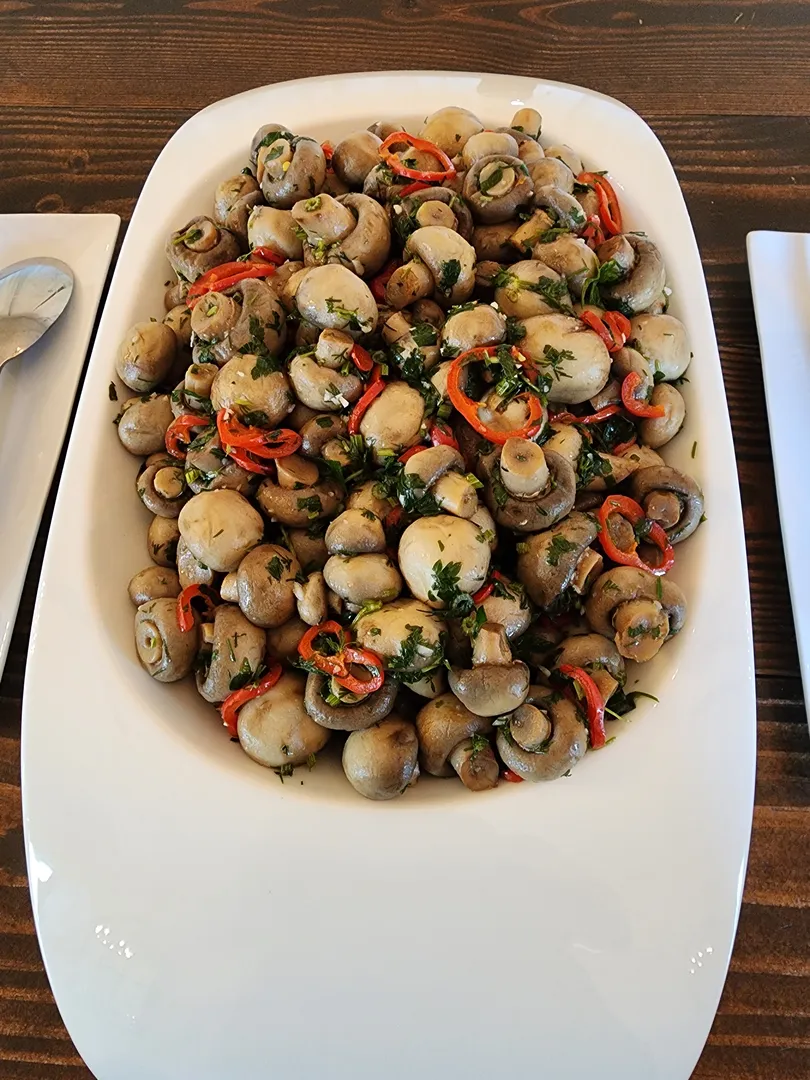 - Olivier - sausage, eggs, vegetables, pickles, sauce