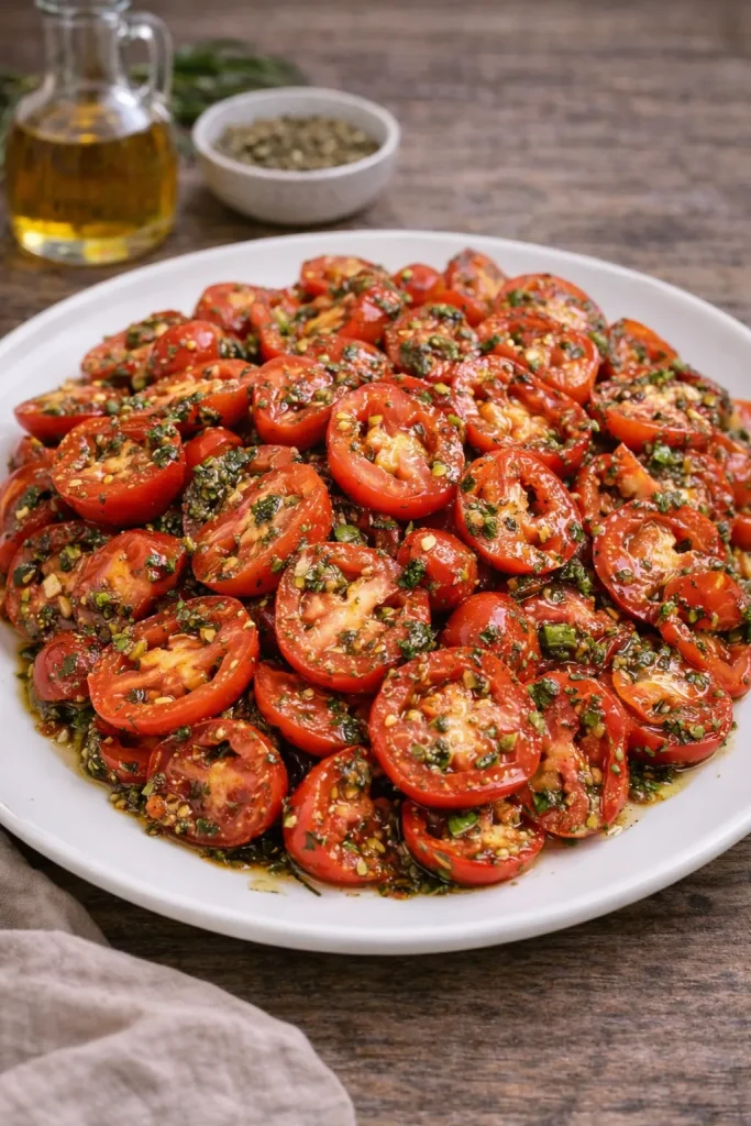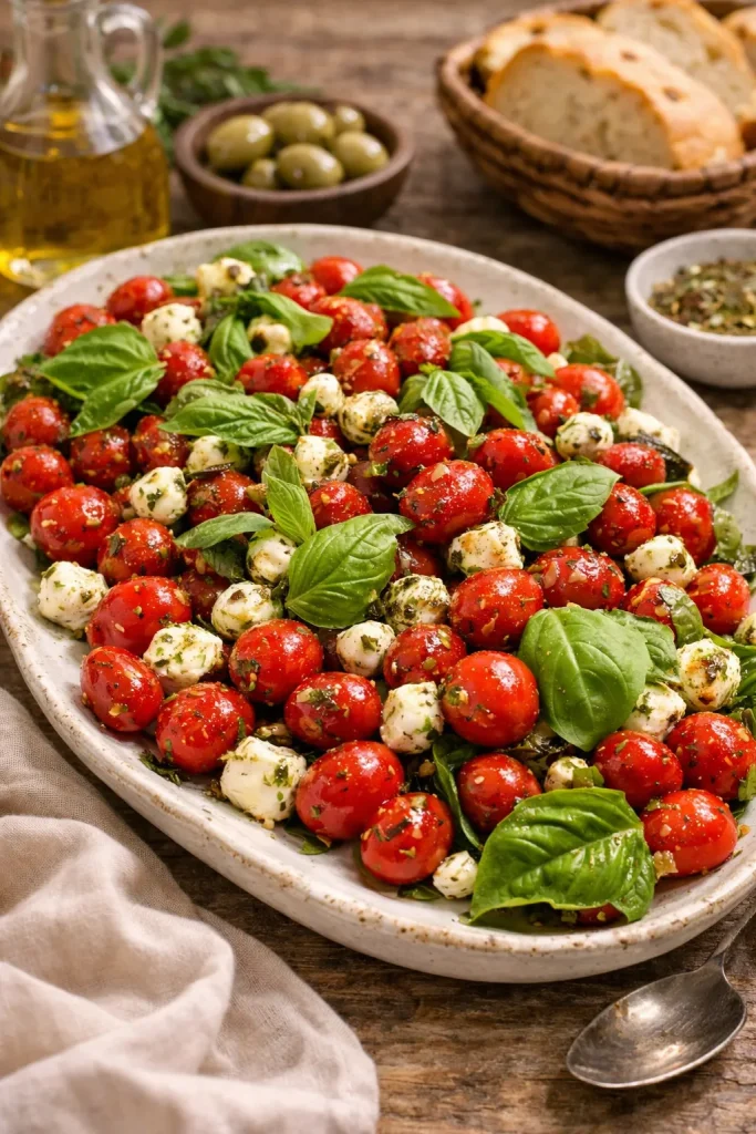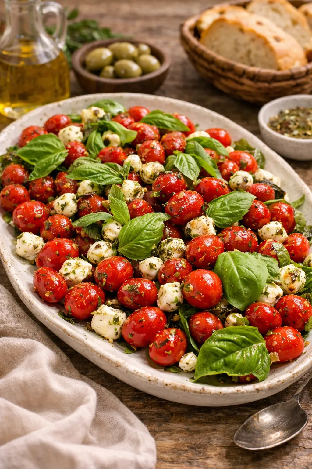 - Mozzarella with tomatoes - mozzarella cheese, glaze sauce, tomatoes